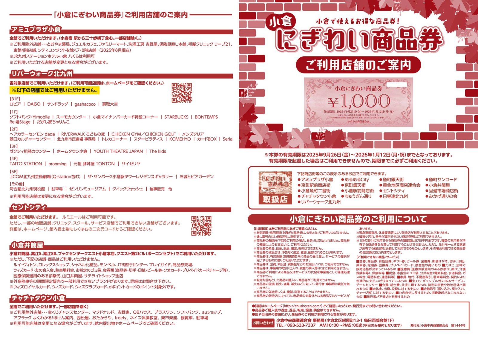 小倉中心市街地の商店街と大型商業施設で構成する商業団体・小倉中央商業連合会は、プレミアム商品券「小倉にぎわい商品券」を発行します。