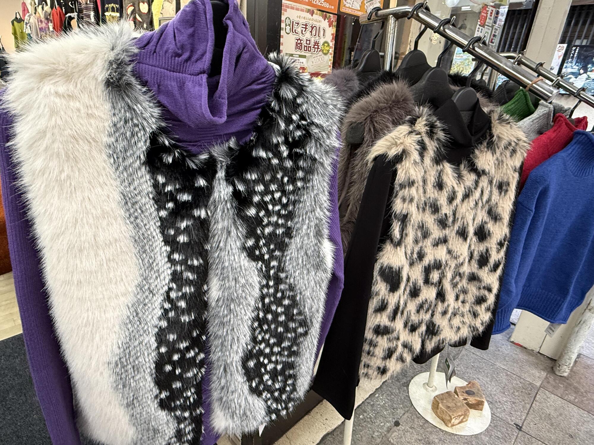 ▲ファーを使ったベストは今季のトレンドのひとつ。シンプルな装いのアクセントに最適
