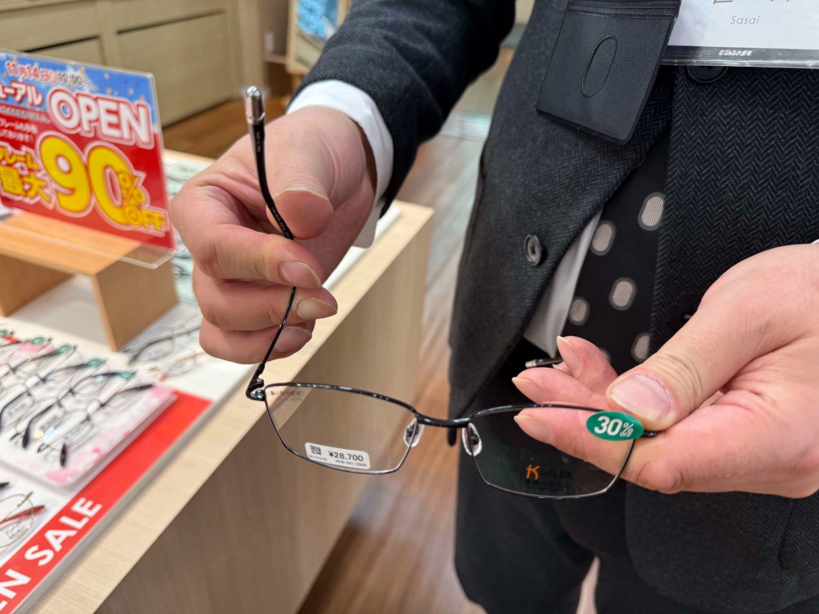 こうした生活にまで踏み込んだカウンセリングを支えているのが、スタッフ一人ひとりの圧倒的な技術力です。笹井店長をはじめ、スタッフの多くは2021年に制定された国家検定資格「眼鏡作製技能士」を保持しています 。医学的な知識やフィッティングの力学まで、科学的な裏付けを持って「最高の見える」を追求するメガネ作製のエキスパートなのです。