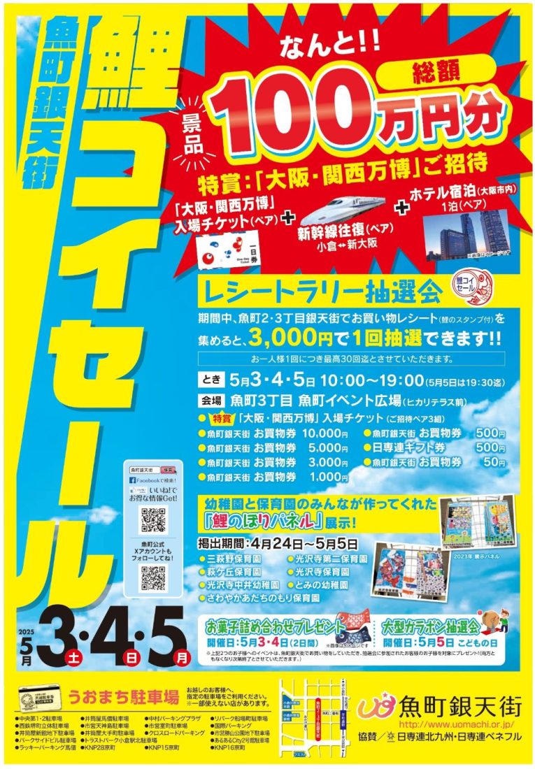 魚町二・三丁目でお買物レシートを集めると3,000円に1回抽選できます。